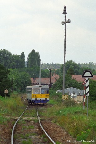 Náhradou zrušeného vjezdového návěstidla se v Kloboukách stala lichoběžníková tabulka. Do záběru se dostala návěstidla - rychlostník, návěstní tělesa staršího typu na výhybkách, sklonovník a dopravní značky, upozorňující na železniční přejezd.